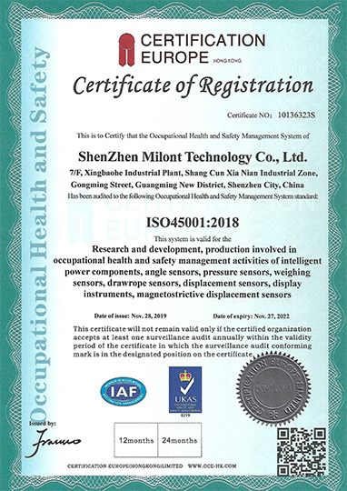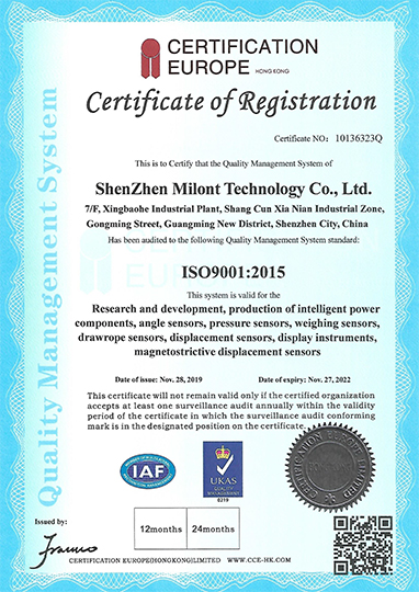 Software copyright registration certificate of Milont magnetostrictive displacement sensor intelligent control system V1.0